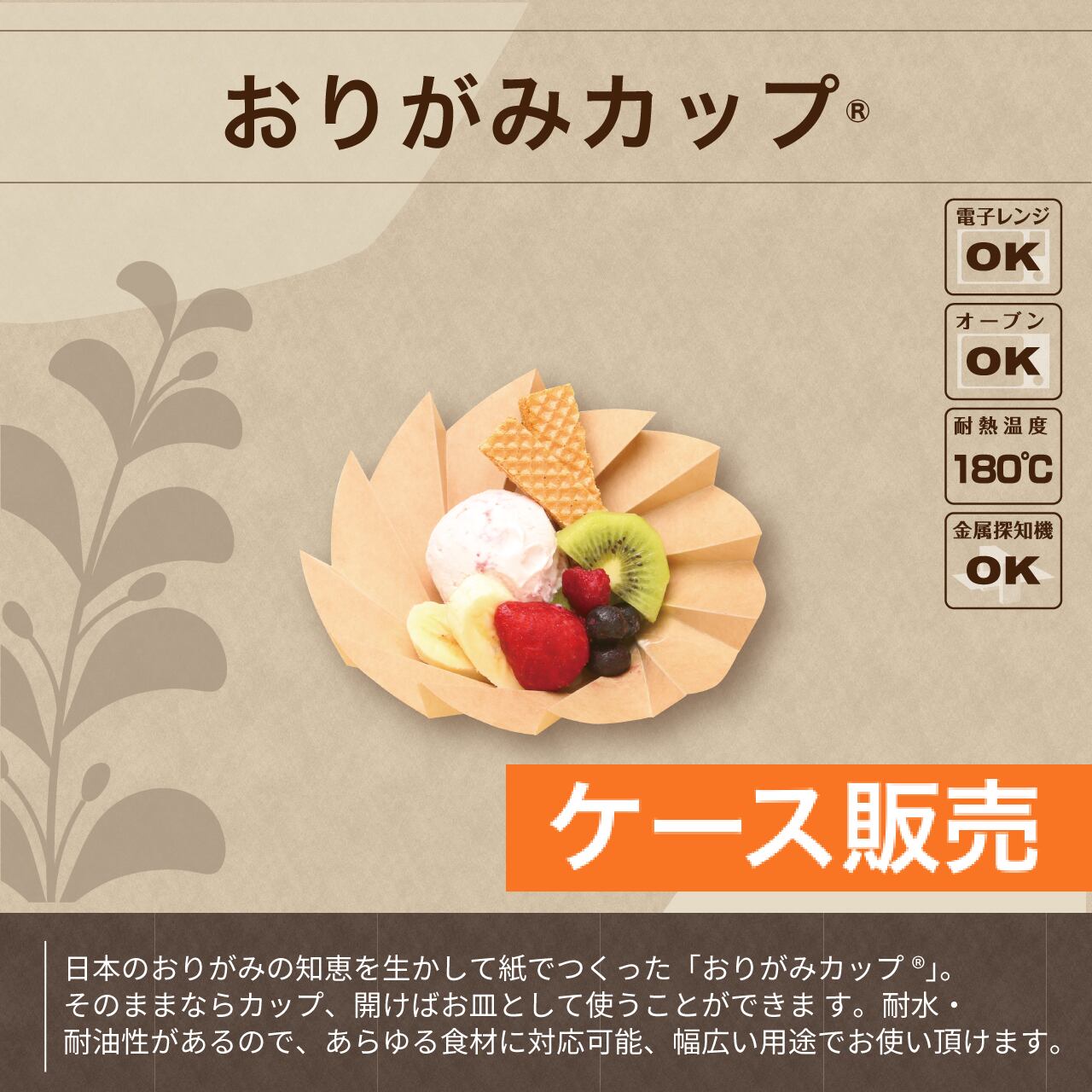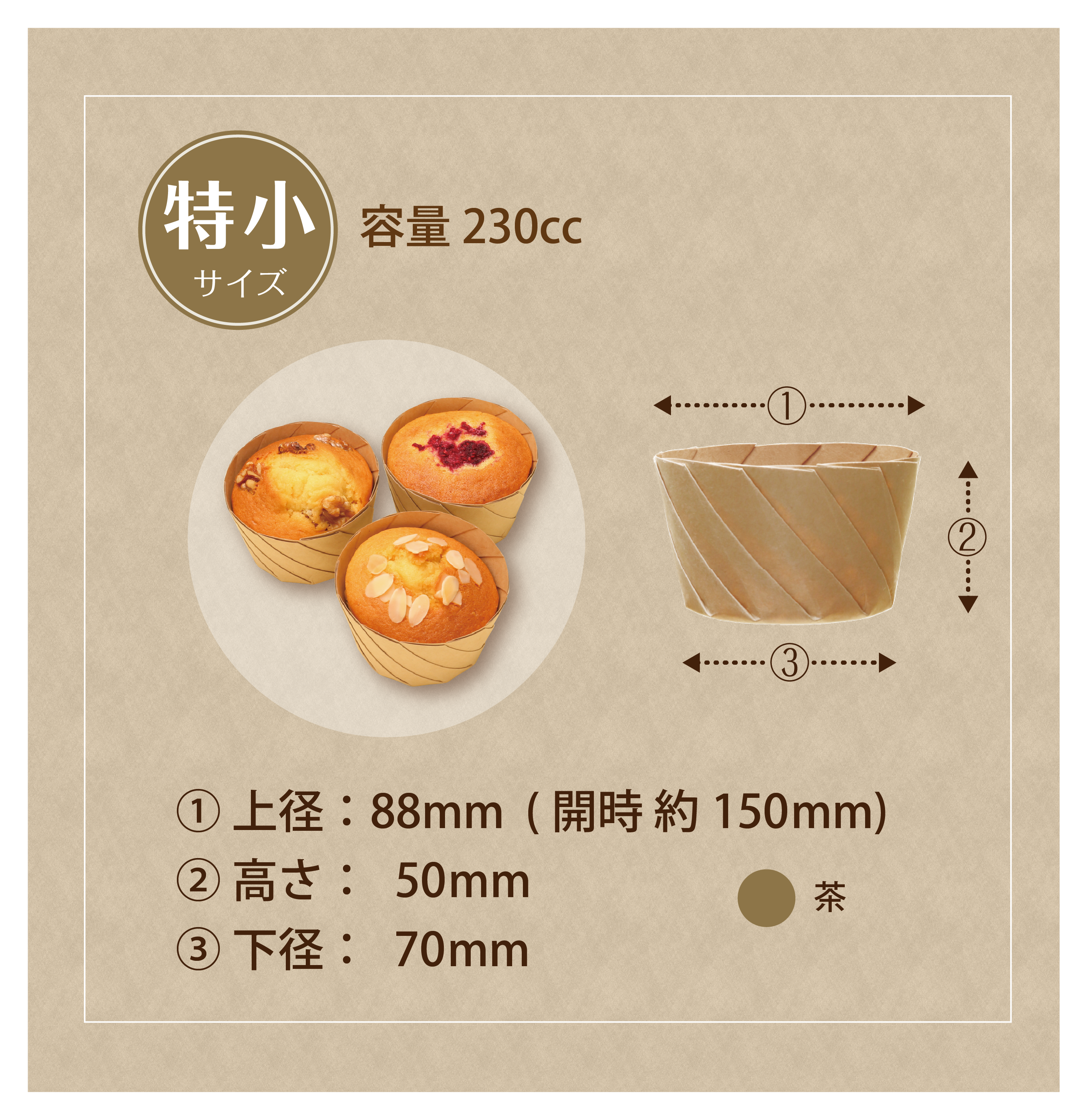 おりがみカップ® 【 特小 / 茶 】 (耐熱・オーブン対応)