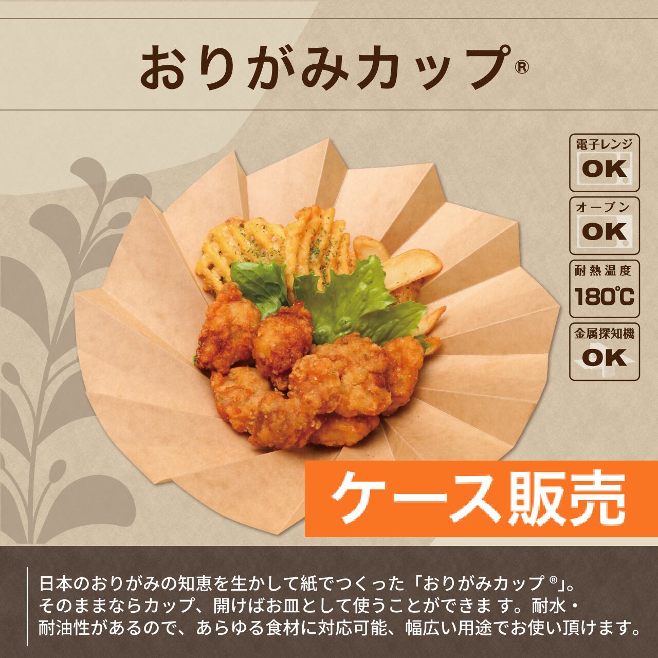 おりがみカップ® 【 大 / 茶 】 (耐熱・オーブン対応)