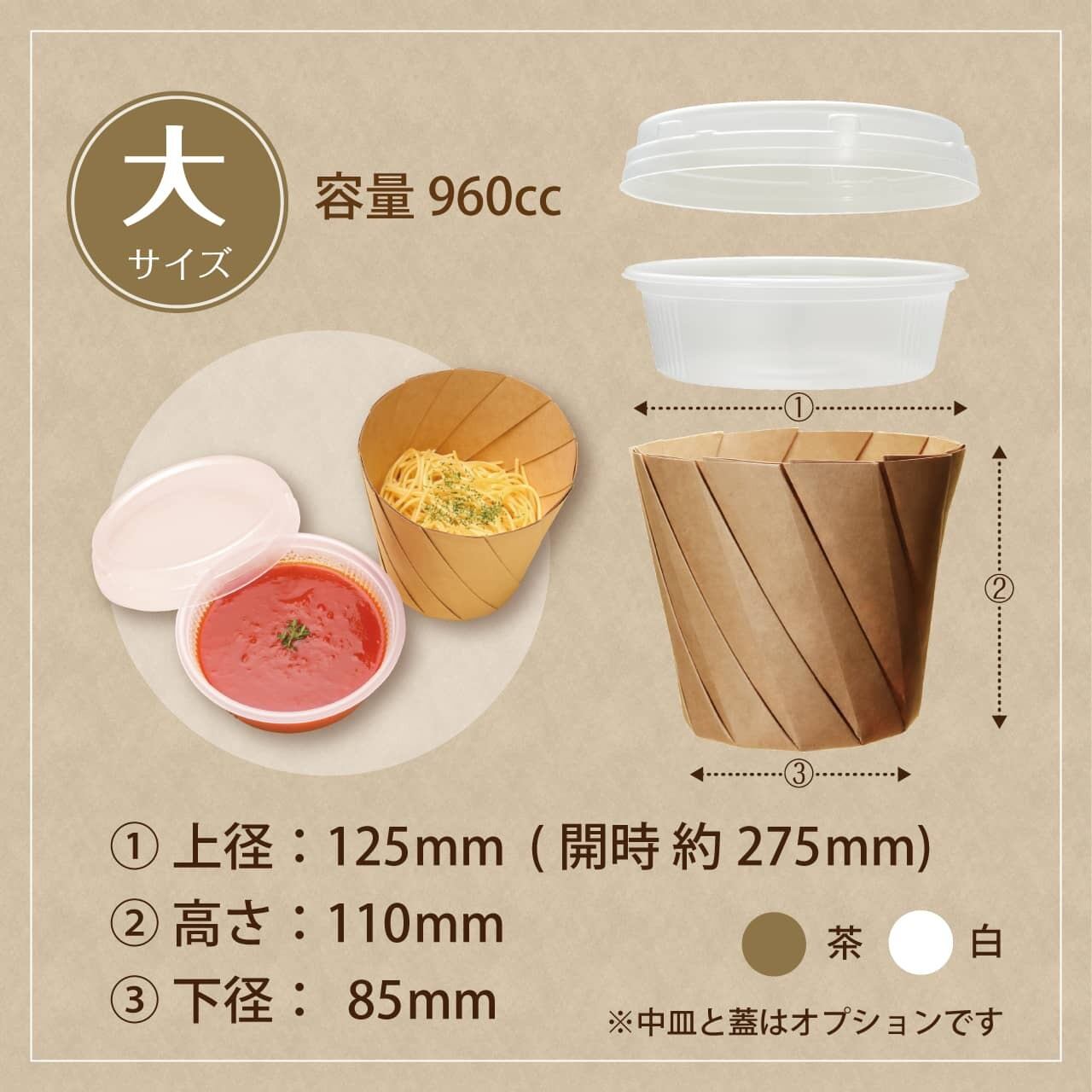 内側は耐水・耐油加工が施されており、テイクアウトをはじめ、あらゆる食材に対応可能です。